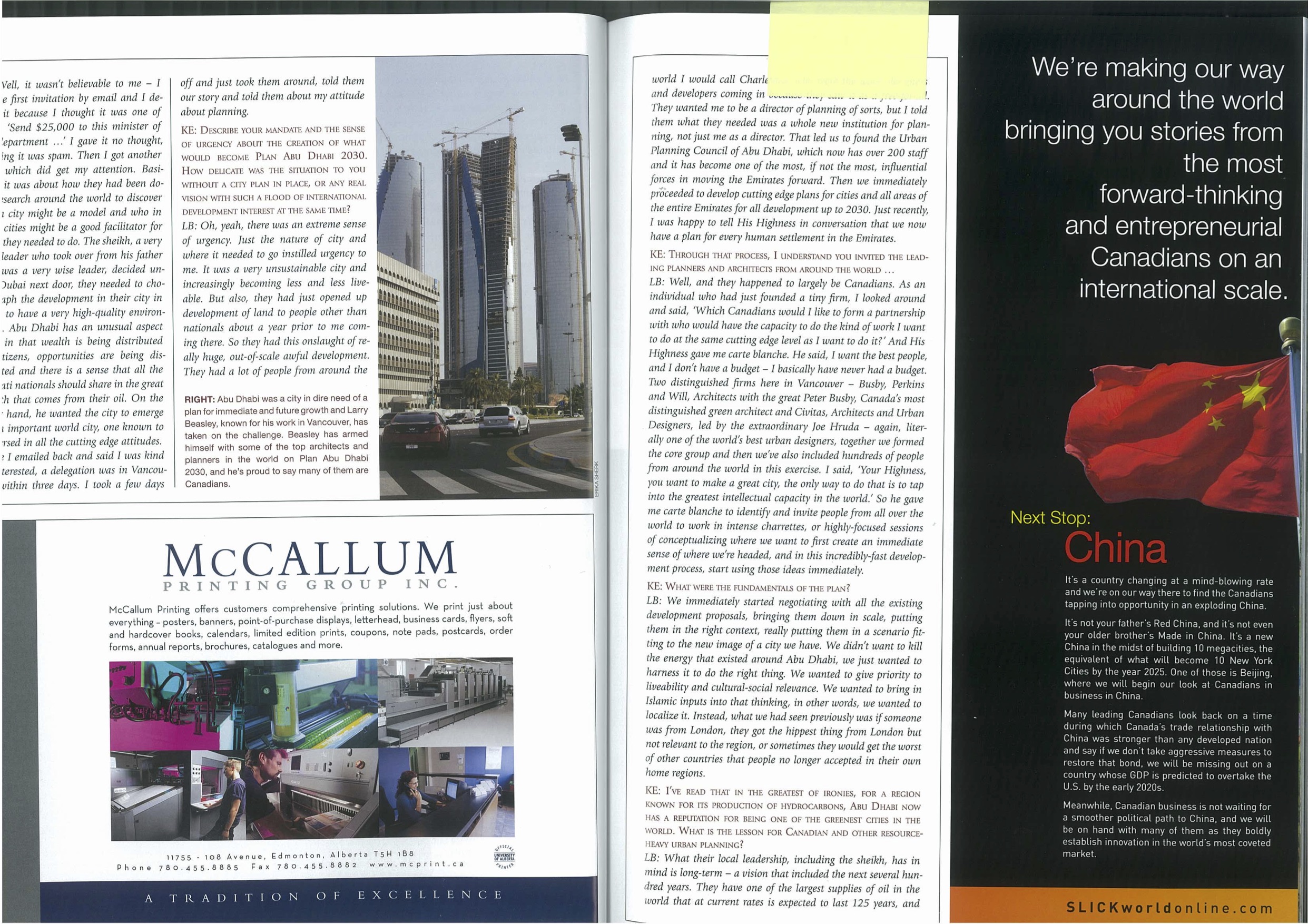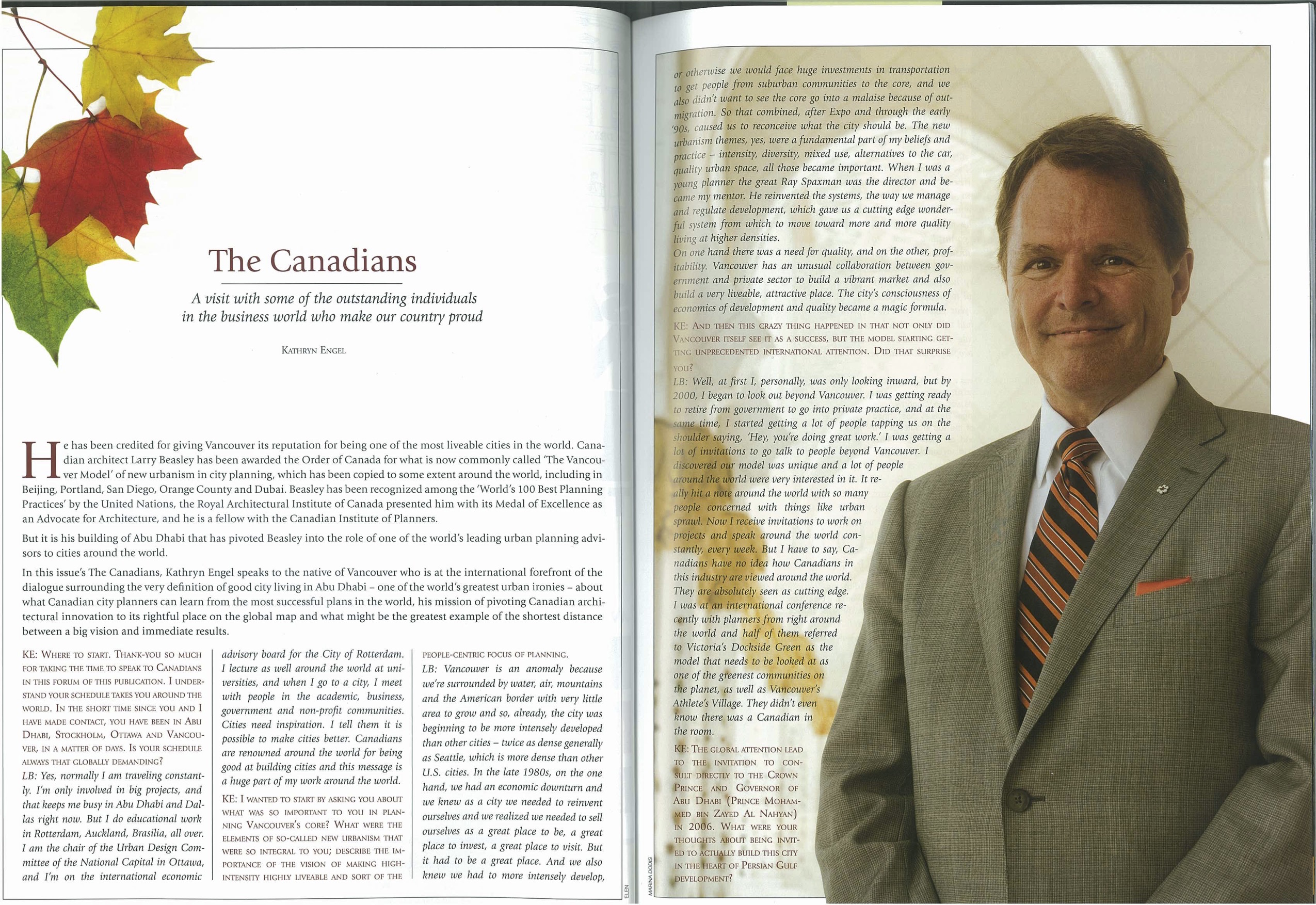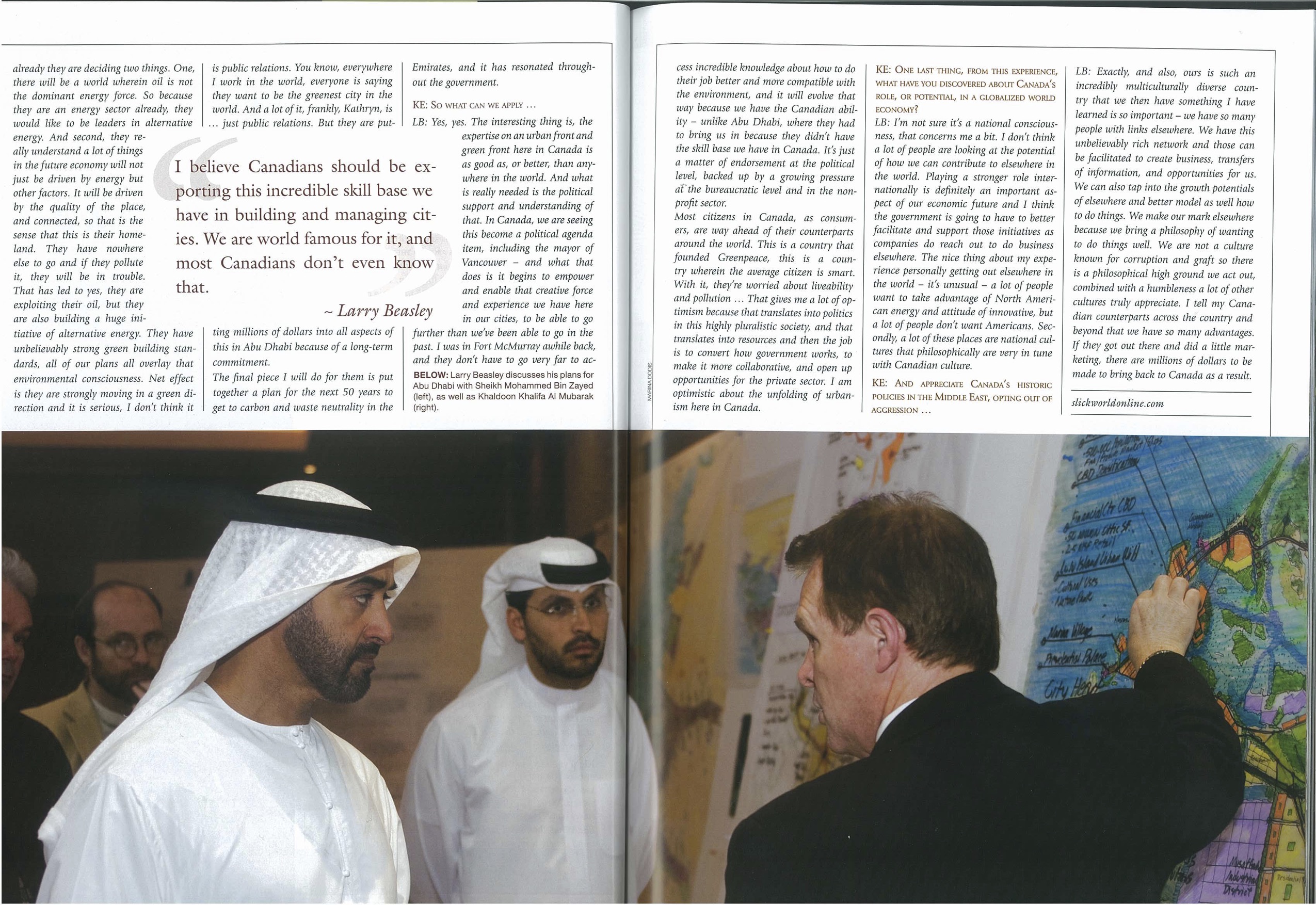 But, you know, this is not a one-way street. I have found my work in Abu Dhabi is very inspirational for our efforts to build better communities here in North America. Frankly, my work there offers me a cold clear view of where we stand in the United States and Canada when it comes to the best of contemporary city building.